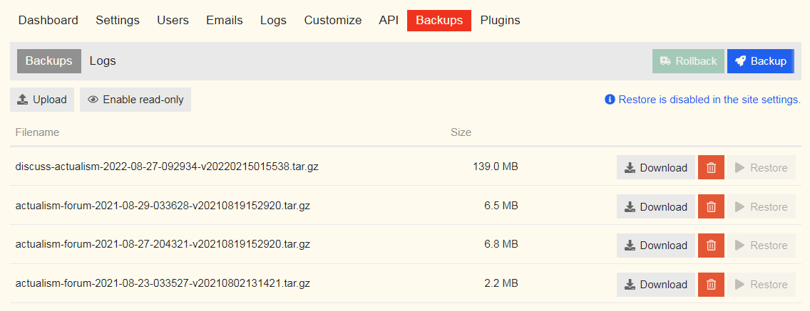 In this new droplet created in DO on behalf of AIAFF, Discourse backups are being made, so you don’t have to rush. Don’t worry.