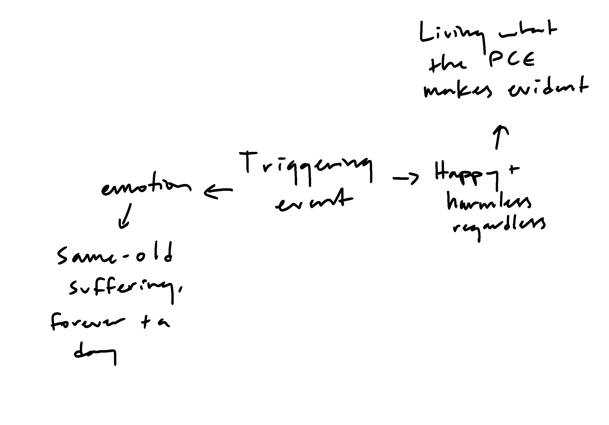 We talked about this with all emotions on our trip. Indulging in an emotion is to move away from AF. The good news is twofold: Choosing to not indulge in an emotion can be done at any time whether it’s love or anything else, whether the actual trigger is present or not. Allowing yourself a happy and harmless experience of this ongoing moment is a choice towards AF.